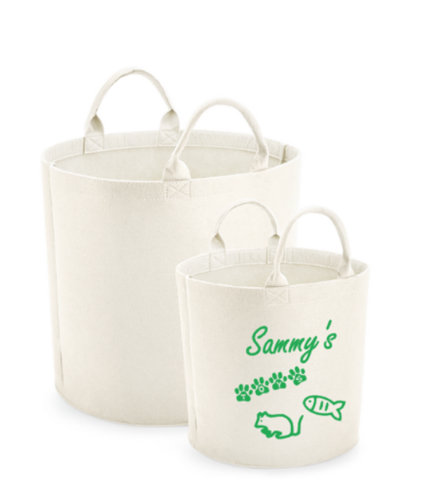 De speelgoedmand is gemaakt van hoogwaardig vilt met een dikte van 5 mm. Aan elke kant zitten twee handgrepen.
