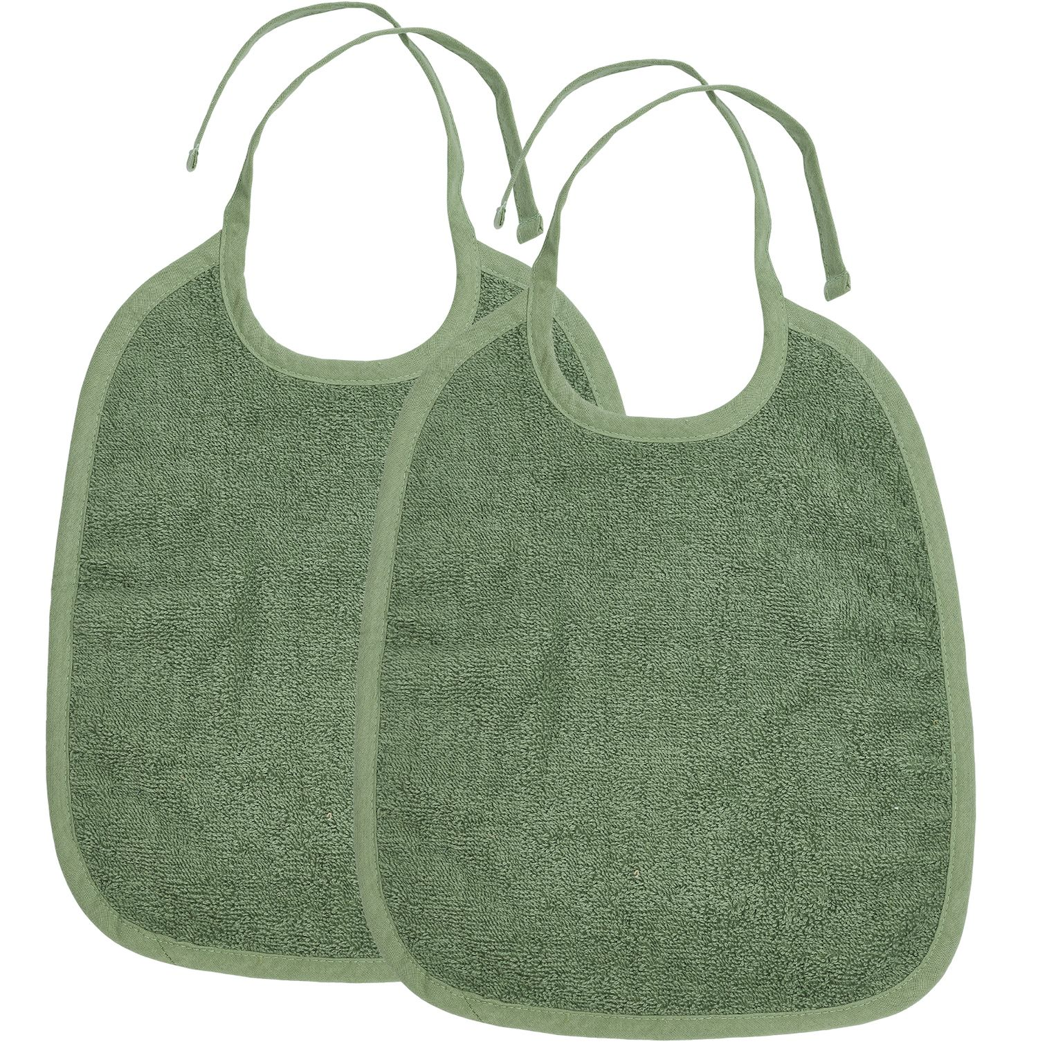 De slab is gemaakt van 100% katoenen badstof, hierdoor neemt deze vocht goed op én is de slab sneldrogend. Je strikt de slab aan de achterzijde met de koordjes, zodat hij voor iedere leeftijd past.