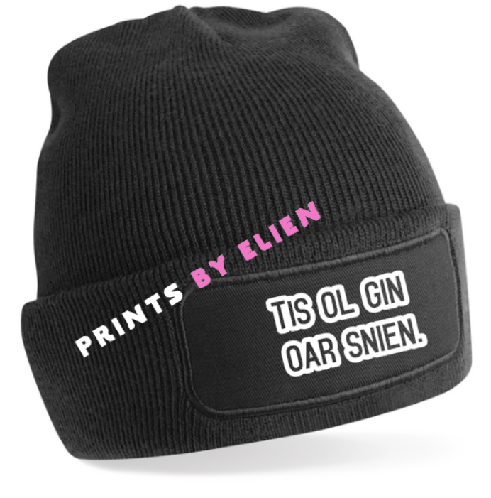 Deze leuke muts wordt bedrukt met "Tis ol gin oar snien.".