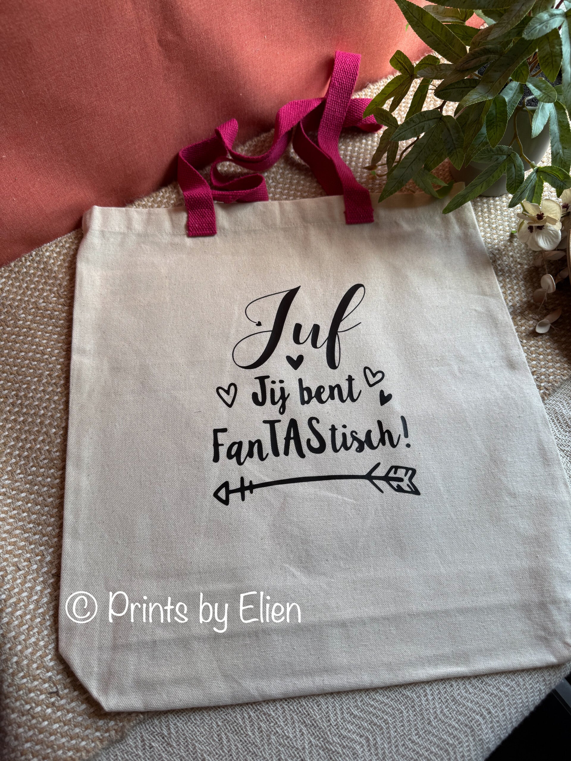 Shopper met plooi en contrasterend hengsel - Juf jij bent fanTAStisch